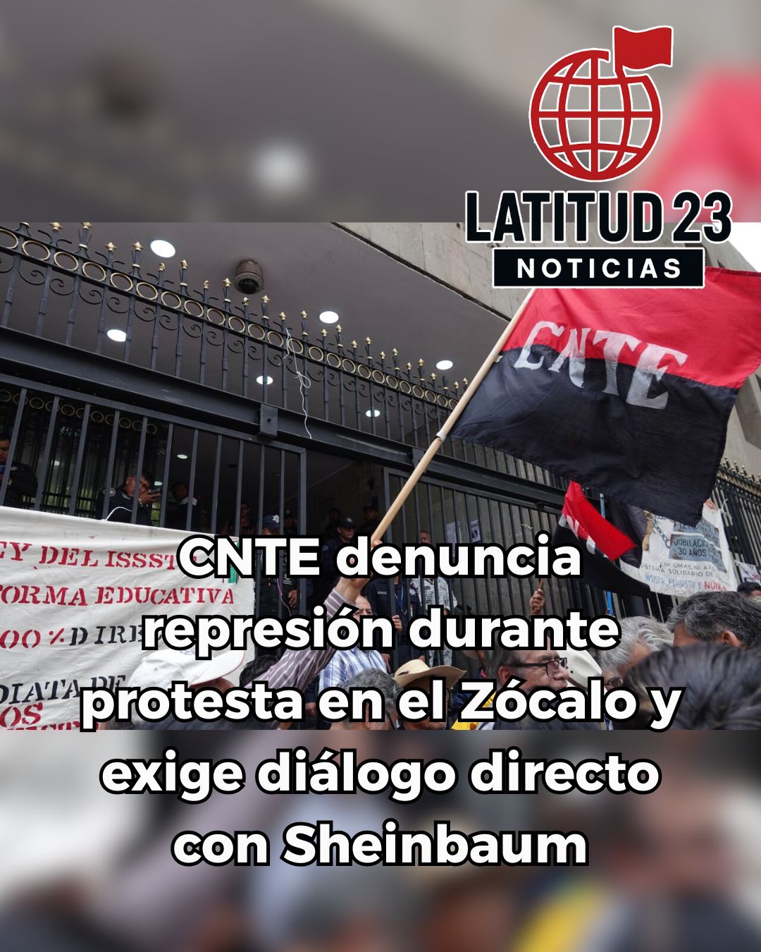 La Coordinadora Nacional de Trabajadores de la Educación (CNTE) protagonizó una nueva jornada de protesta en el Zócalo capitalino, en el marco de su Jornada Nacional de Lucha de 48 horas, para exigir la abrogación de la Ley del ISSSTE 2007, la derogación de la Reforma Educativa y la reinstalación de la mesa de diálogo con la presidenta Claudia Sheinbaum Pardo.