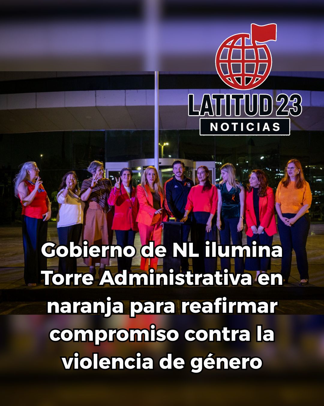 En conmemoración del Día Internacional de la Eliminación de la Violencia contra las Mujeres, el Gobierno de Nuevo León encendió este lunes la Torre Administrativa en color naranja, como un mensaje público de apoyo a las niñas y mujeres y un recordatorio del deber institucional de erradicar cualquier forma de agresión.