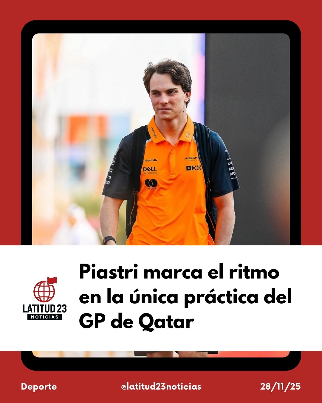 Oscar Piastri superó a su compañero de McLaren y rival por el campeonato, Lando Norris, al encabezar la tabla de tiempos en la única sesión de entrenamientos del viernes para el Gran Premio de Qatar.