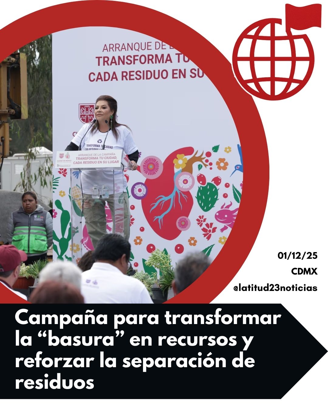 La Jefa de Gobierno de la Ciudad de México, Clara Brugada, presentó la campaña “Transforma tu ciudad, cada residuo en su lugar”, con la cual inicia una nueva fase en la política de gestión de residuos de la capital. El objetivo central es impulsar un cambio cultural que lleve a la ciudadanía a dejar de ver la “basura” como desecho y entenderla como “residuo” con valor y potencial de aprovechamiento.