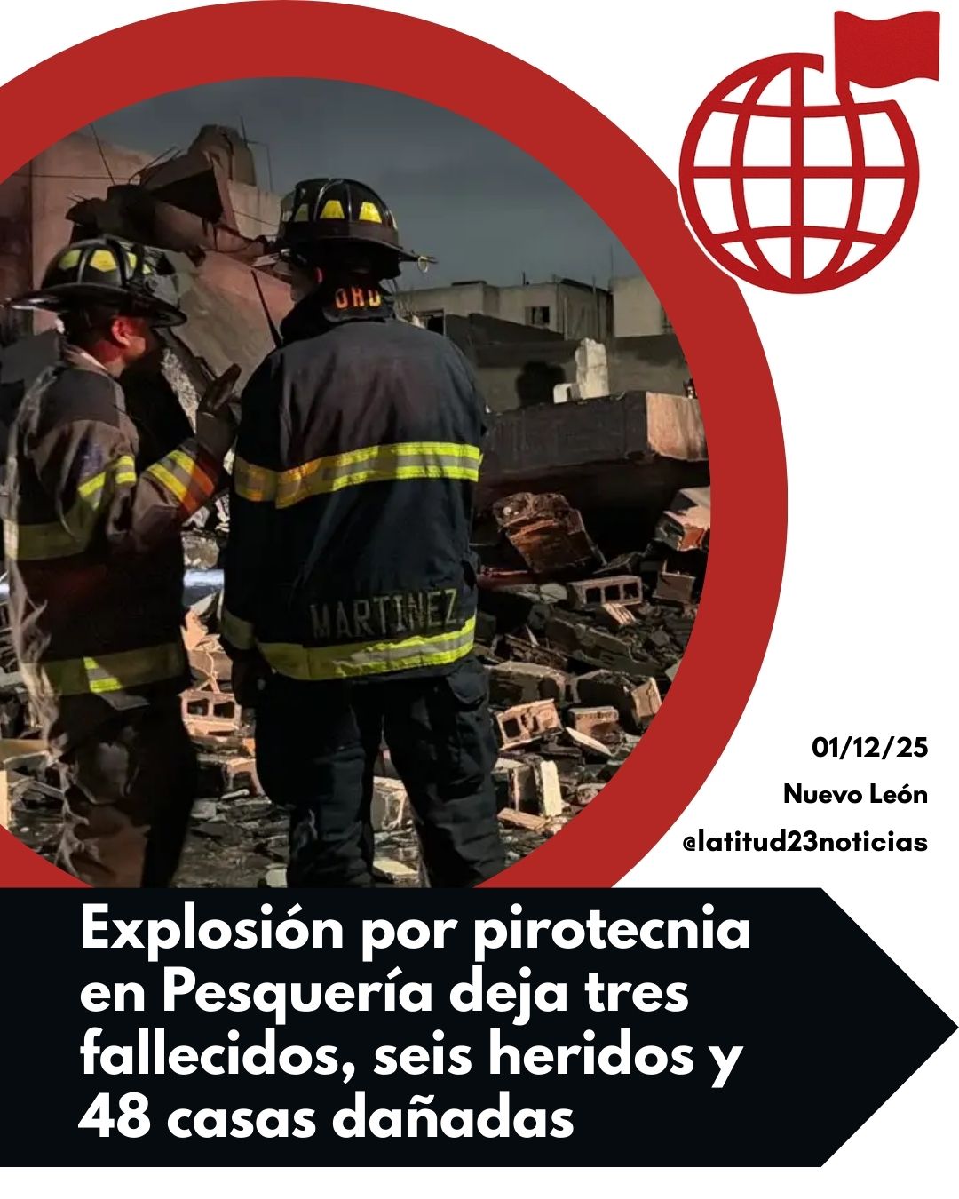 Una explosión causada por almacenaje ilegal de pirotecnia dejó un saldo de tres personas fallecidas, seis lesionadas y 48 viviendas dañadas la noche del viernes en la colonia Los Olmos, informó Protección Civil de Nuevo León.