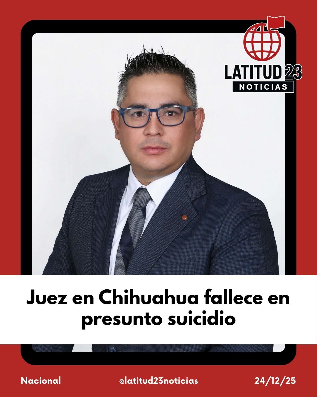 La FiscalÃa General del Estado (FGE) de la zona Norte informó que el sábado se recibió un reporte de suicidio en un domicilio ubicado en la calle Haciendas del Parque, dentro de la colonia del mismo nombre. El juez fue encontrado con una herida por proyectil de arma de fuego en la cabeza.