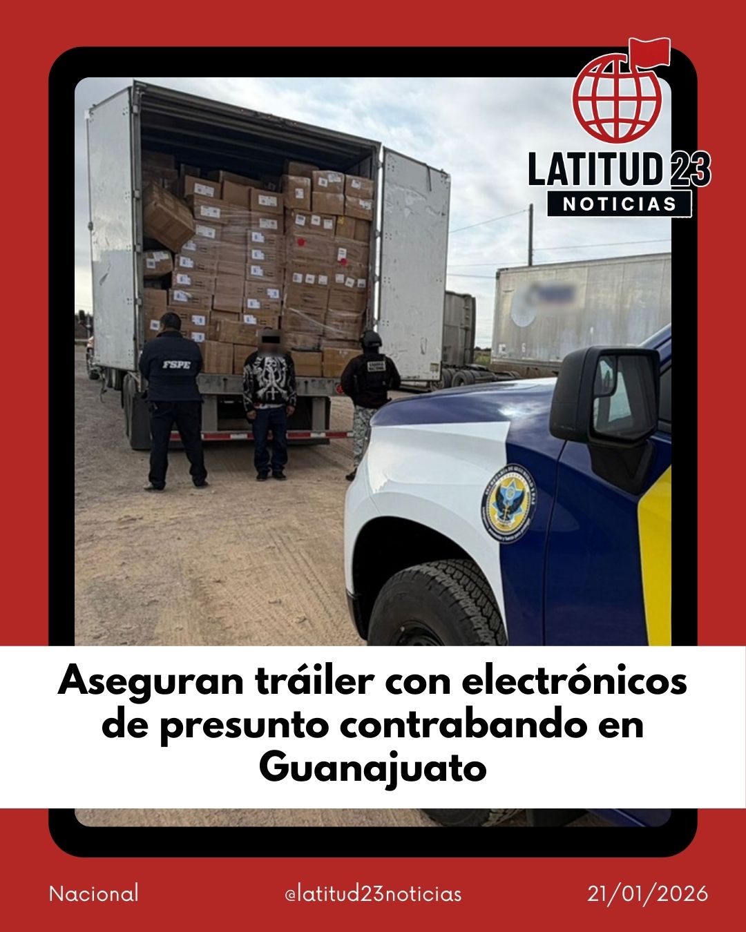 La Secretaría de Seguridad y Paz dio a conocer que la Policía Estatal de Caminos aseguró un tráiler que transportaba aproximadamente 24 toneladas de aparatos electrónicos procedentes de China, los cuales presuntamente ingresaron de manera ilegal al país. De acuerdo con las autoridades, el valor estimado de la mercancía asciende a cerca de cinco millones de pesos.