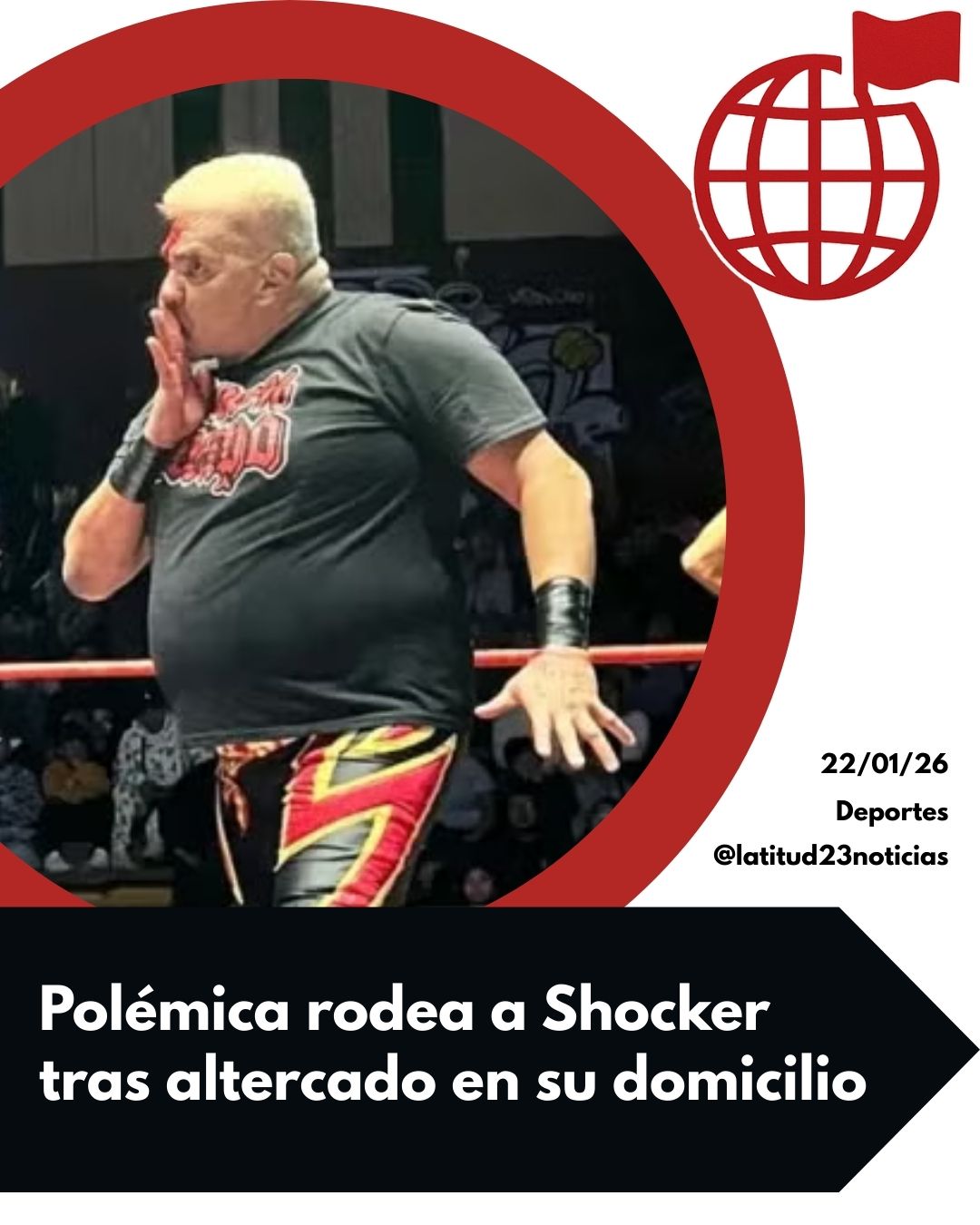 El luchador profesional mexicano José Jairzinho Soria Reyna, conocido en el mundo de la lucha libre como Shocker y popular por su lema “mil por ciento guapo”, fue captado la noche del 21 de enero durante una discusión con su esposa al interior de su domicilio, ubicado en la alcaldía Cuauhtémoc, en la Ciudad de México.