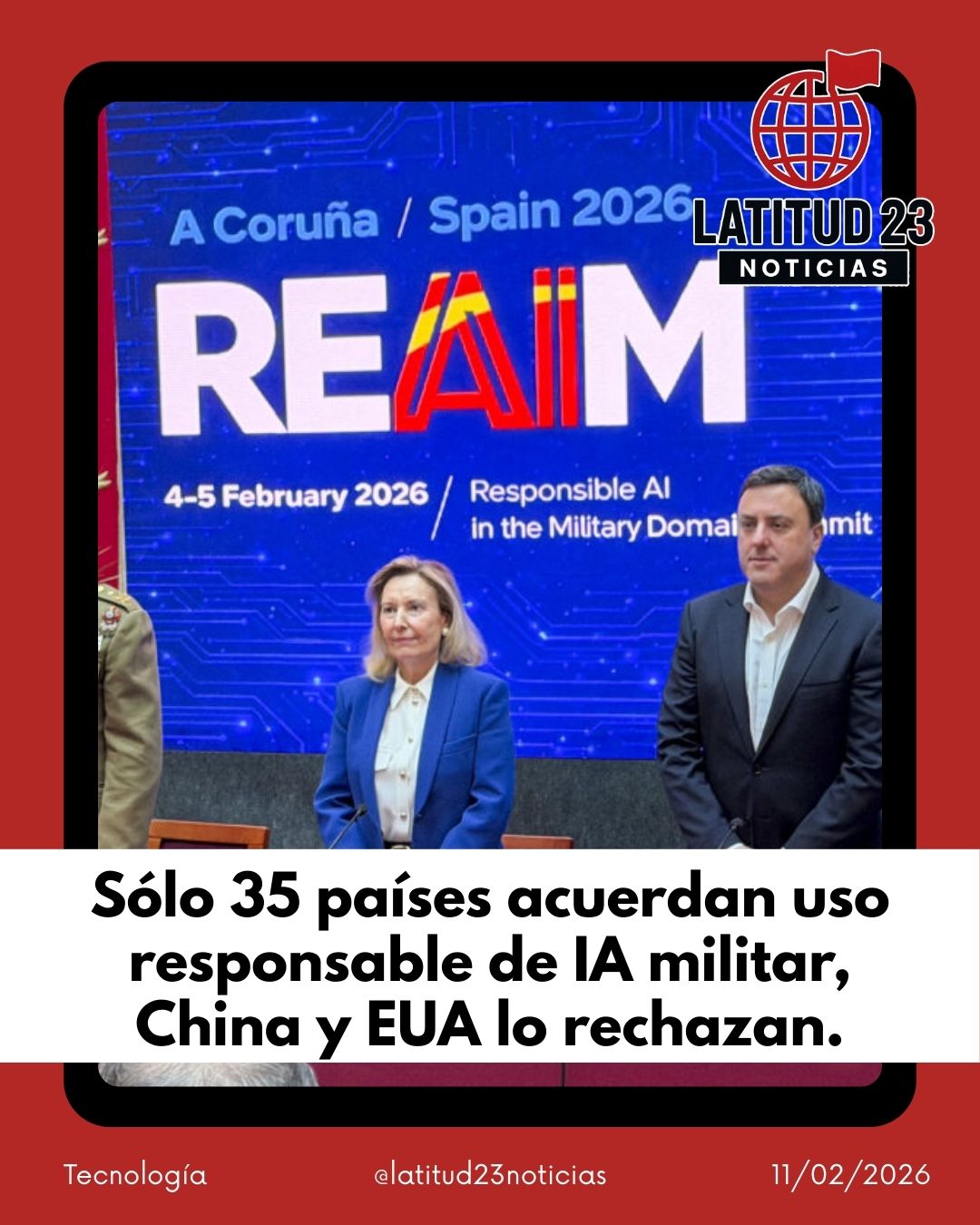 En la III Cumbre Internacional sobre el Uso Responsable de la Inteligencia Artificial en el Ámbito Militar (REAIM), celebrada en A Coruña, solo 35 de los 85 países participantes firmaron una declaración no vinculante para garantizar un uso seguro y responsable de la IA militar. Entre los ausentes se encuentran China y Estados Unidos, actores clave en el desarrollo tecnológico militar.