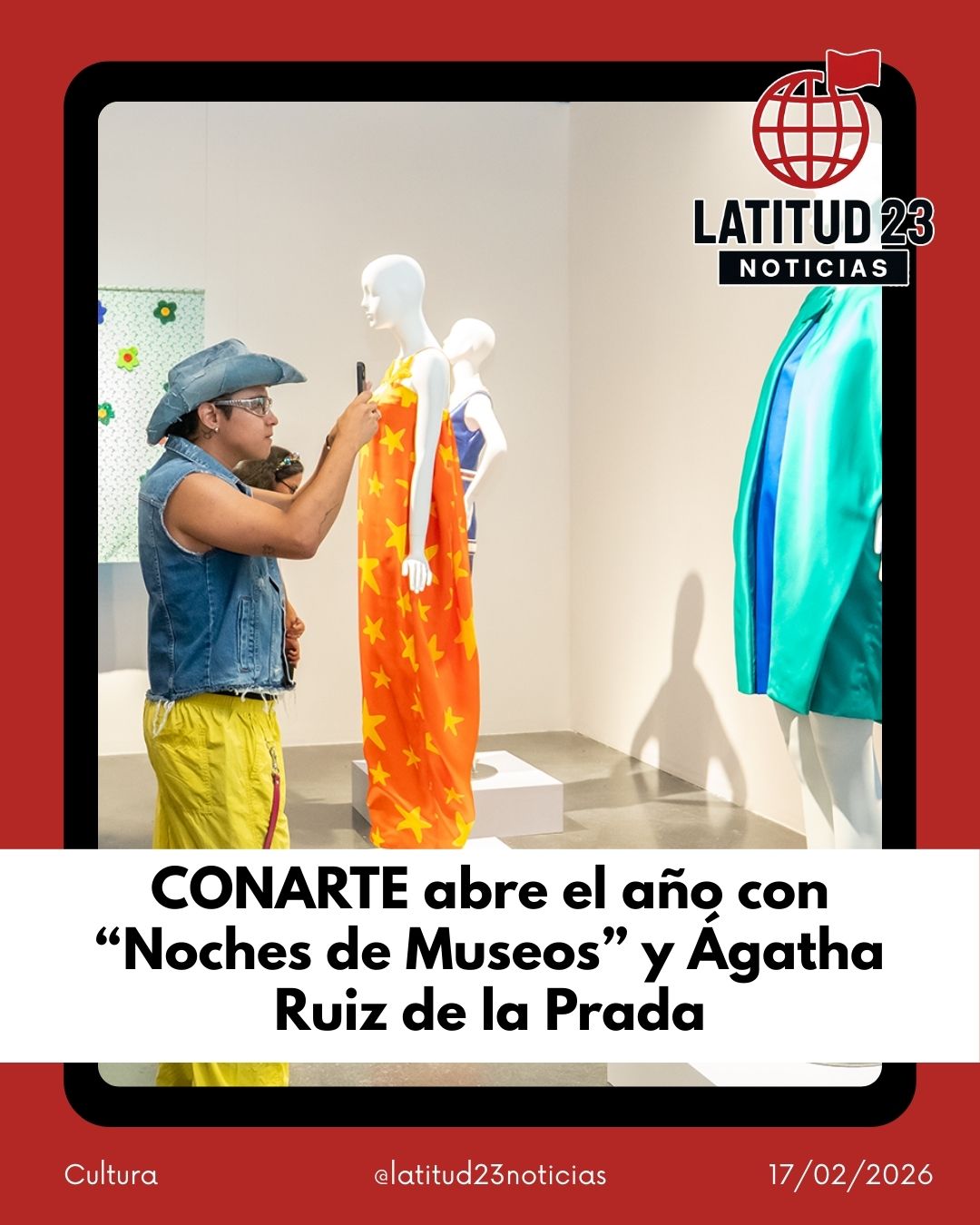 El Consejo para la Cultura y las Artes de Nuevo León (CONARTE) anunció la primera edición del año de su programa “Noches de Museos”, que en esta ocasión girará en torno a la exposición “El Color Que Nos Inspira” de la diseñadora española Ágatha Ruiz de la Prada.