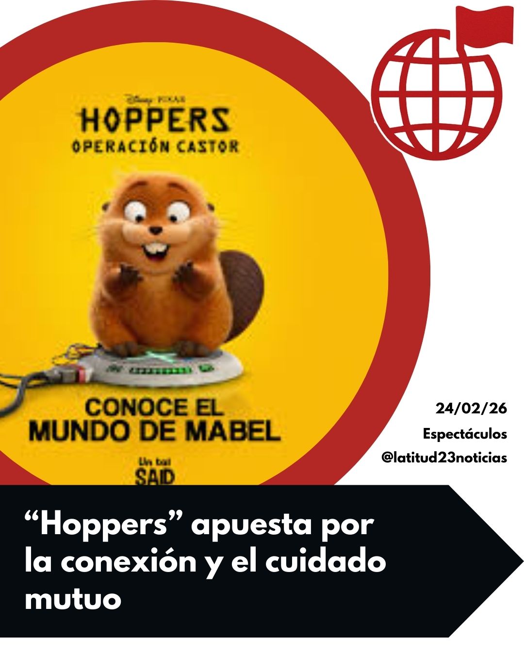 La nueva película animada de Pixar, Hoppers: Operación Castor, llega a los cines este 5 de marzo con una historia centrada en la empatía y la convivencia. Dirigida por Daniel Chong —conocido por Escandalosos—, la cinta plantea la necesidad de reconectar entre nosotros y con el entorno natural.