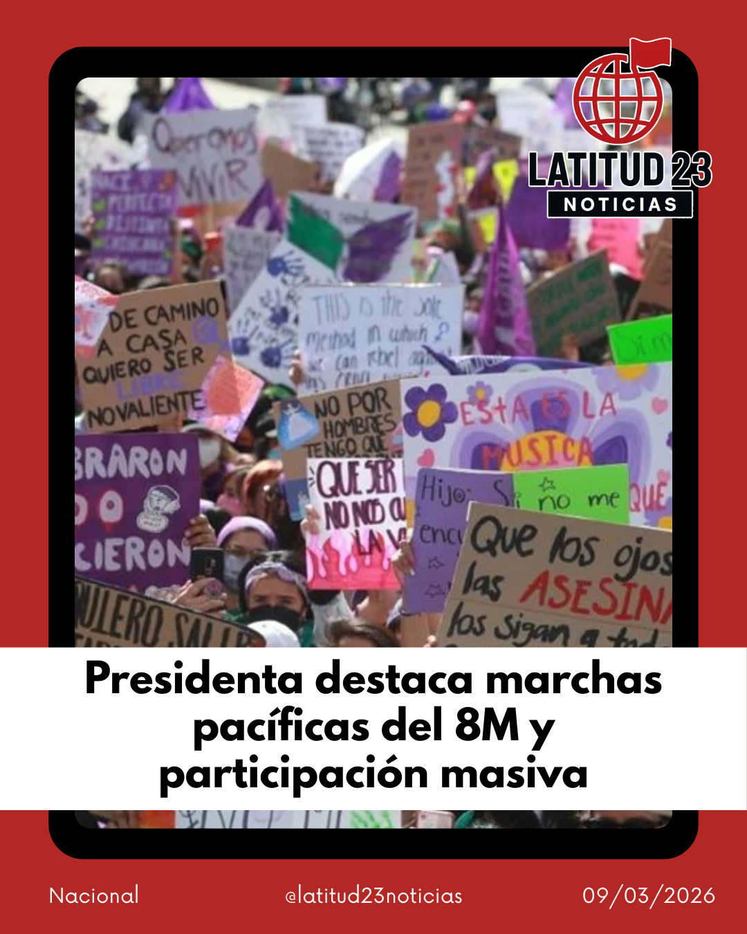 Durante su conferencia matutina, la mandataria señaló que en la capital del país participaron alrededor de 100 mil mujeres, quienes salieron a las calles para exigir el fin de la violencia de género y visibilizar diversas demandas sociales.