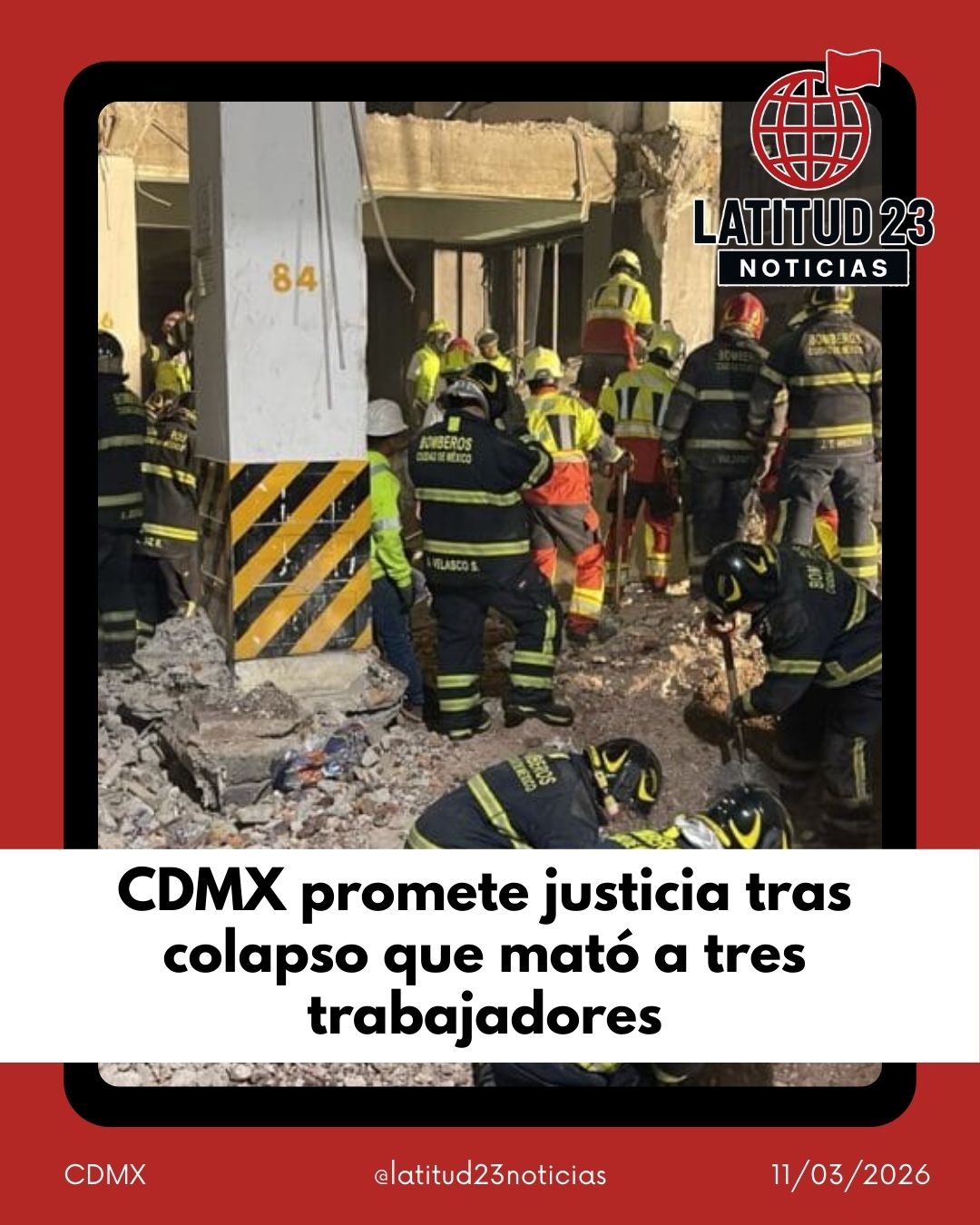 La jefa de Gobierno, Clara Brugada Molina, exhortó a las 16 alcaldías de la Ciudad de México a reforzar los mecanismos de supervisión y vigilancia en obras de demolición, luego del colapso parcial de un edificio de oficinas ubicado en calzada San Antonio Abad 124, en la alcaldía Cuauhtémoc, accidente que dejó tres trabajadores muertos y uno más lesionado.