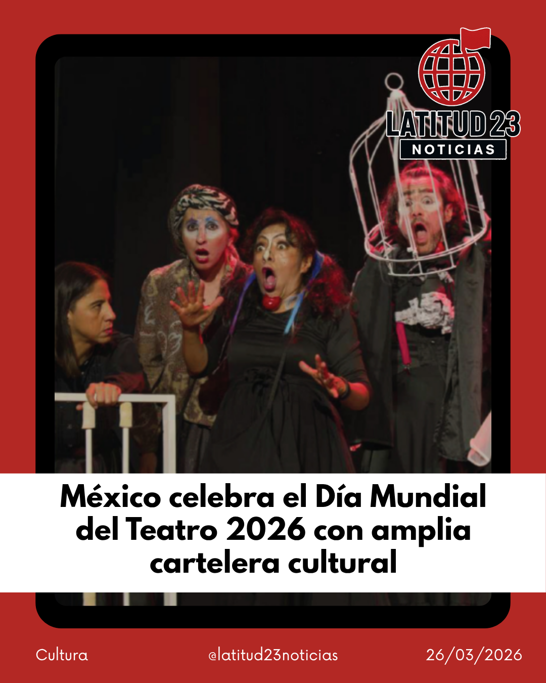 Como parte de la conmemoración mundial, el Instituto Internacional del Teatro difundirá el mensaje oficial de 2026, que estará a cargo del actor Willem Dafoe.Desde 1961, esta fecha reconoce el impacto del teatro en la sociedad, y para 2026, México apuesta por una oferta incluyente, gratuita y diversa que consolida a las artes escénicas como un espacio de encuentro, reflexión y entretenimiento.