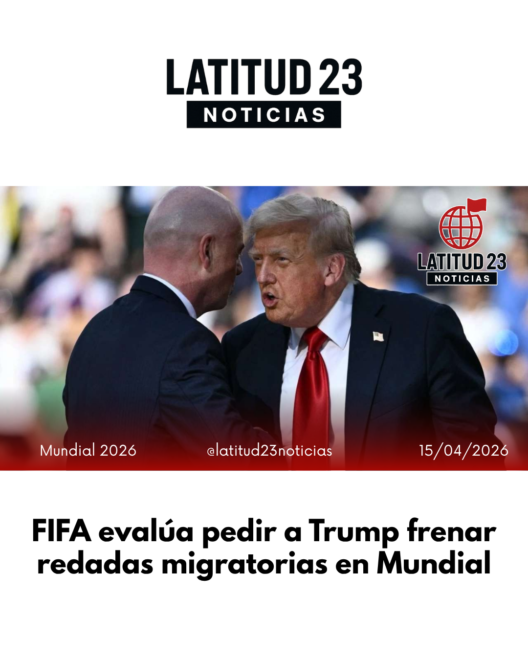 Altos directivos de la FIFA consideran solicitar al presidente de Estados Unidos, Donald Trump, la suspensión temporal de operativos del Servicio de Control de Inmigración y Aduanas (ICE) durante la Copa Mundial de la FIFA 2026.