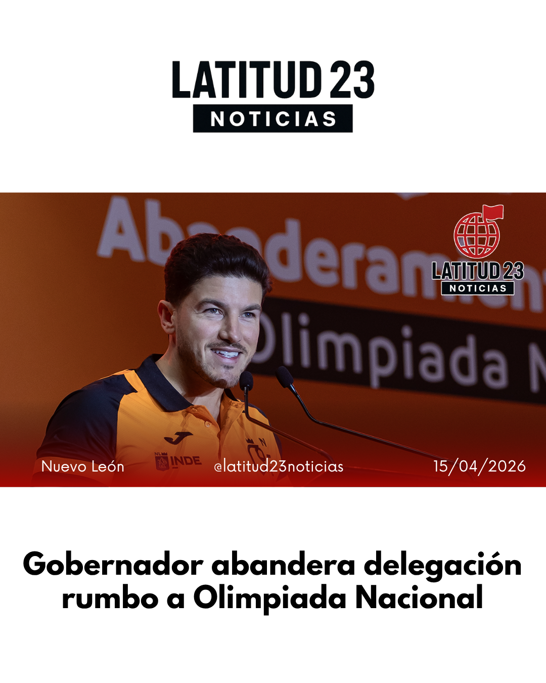 La delegación está integrada por más de 2 mil 100 personas, incluidos alrededor de mil 600 atletas, así como entrenadores, delegados y personal del INDE Nuevo León. Durante el evento, el mandatario anunció el programa “Ayudemos a los Atletas”, que otorgará un apoyo mensual de 2 mil pesos y transporte gratuito a quienes obtengan medallas.