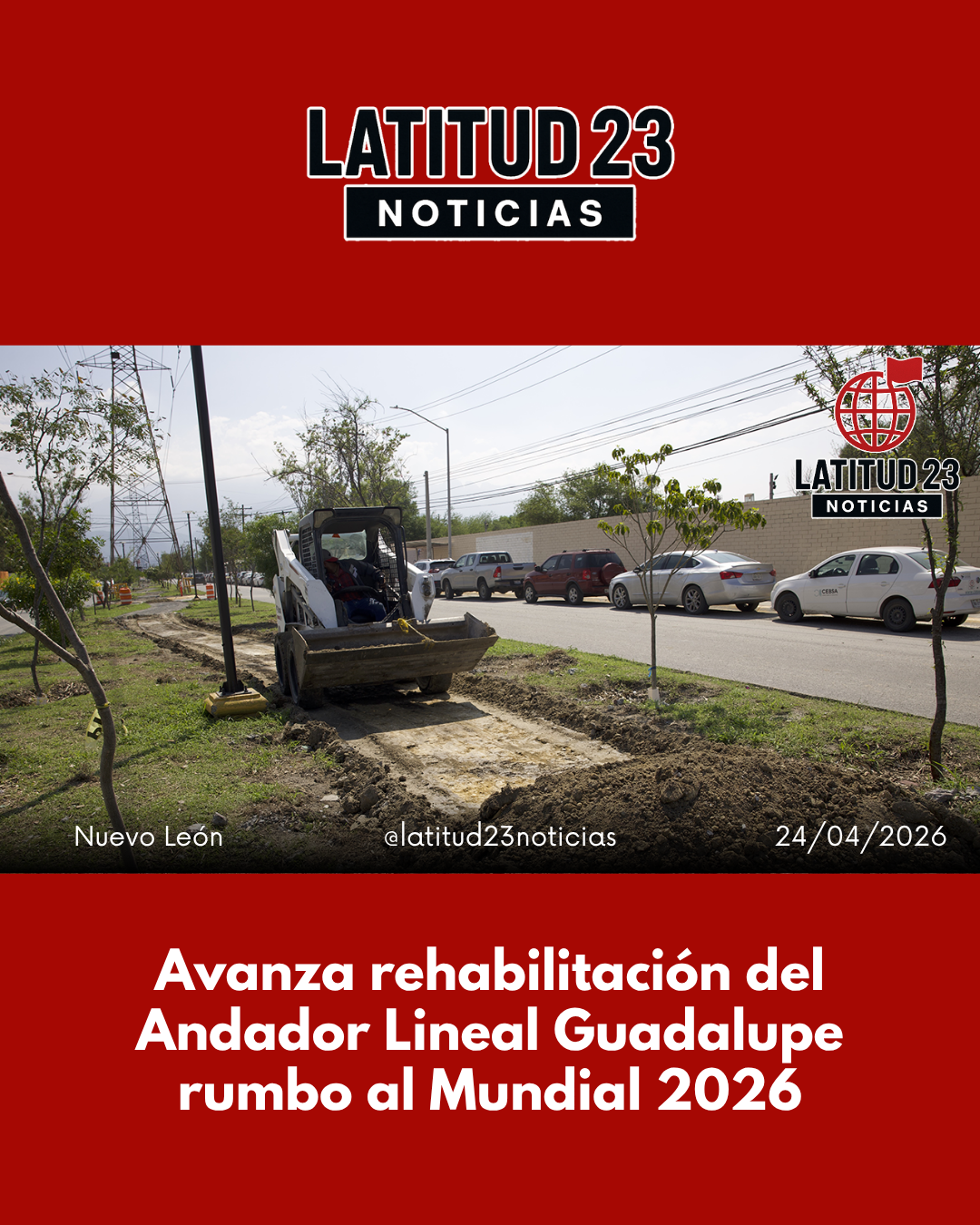 El Gobierno de Nuevo León reportó avances en la rehabilitación del Andador Lineal Guadalupe, obra que se desarrolla en el municipio de Guadalupe y que será un punto clave de acceso peatonal al Estadio Monterrey durante la Copa Mundial de la FIFA 2026.