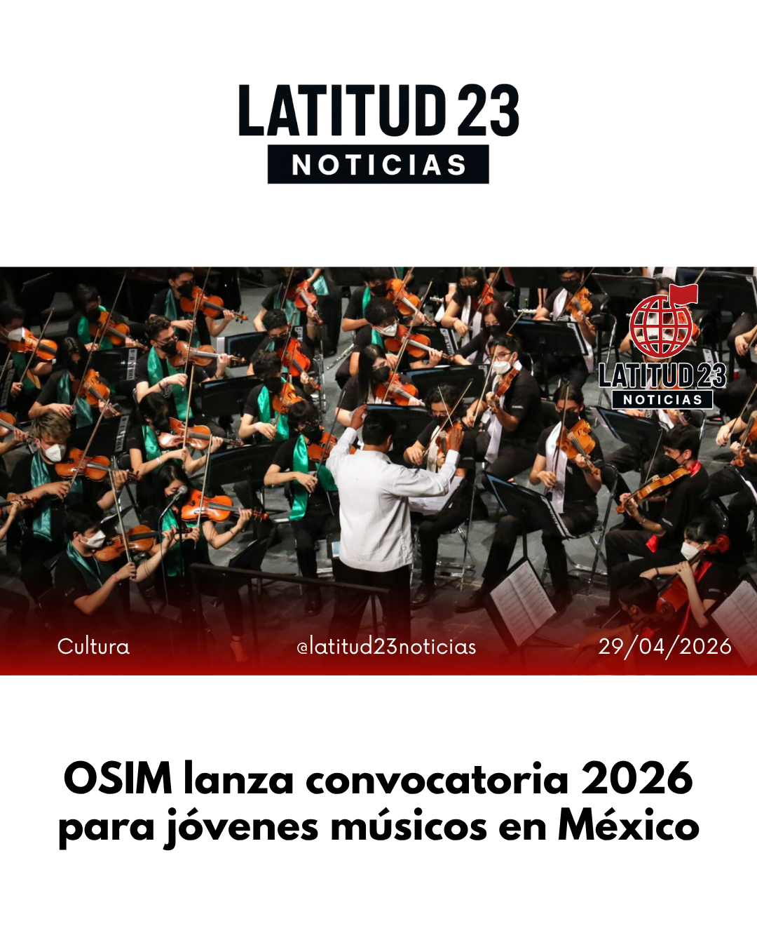La Orquesta Sinfónica Infantil de México (OSIM) abrió su convocatoria 2026 dirigida a niñas, niños y jóvenes instrumentistas de entre 7 y 17 años, con el objetivo de impulsar el talento musical en el país.