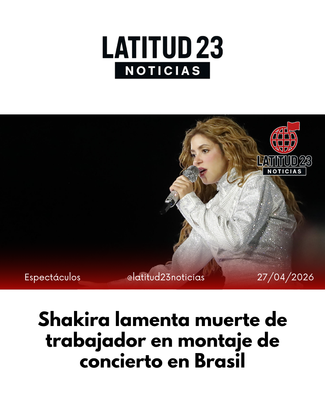 La cantante Shakira expresó su pesar tras la muerte de un trabajador ocurrida durante el montaje del escenario para su próximo concierto en Río de Janeiro.