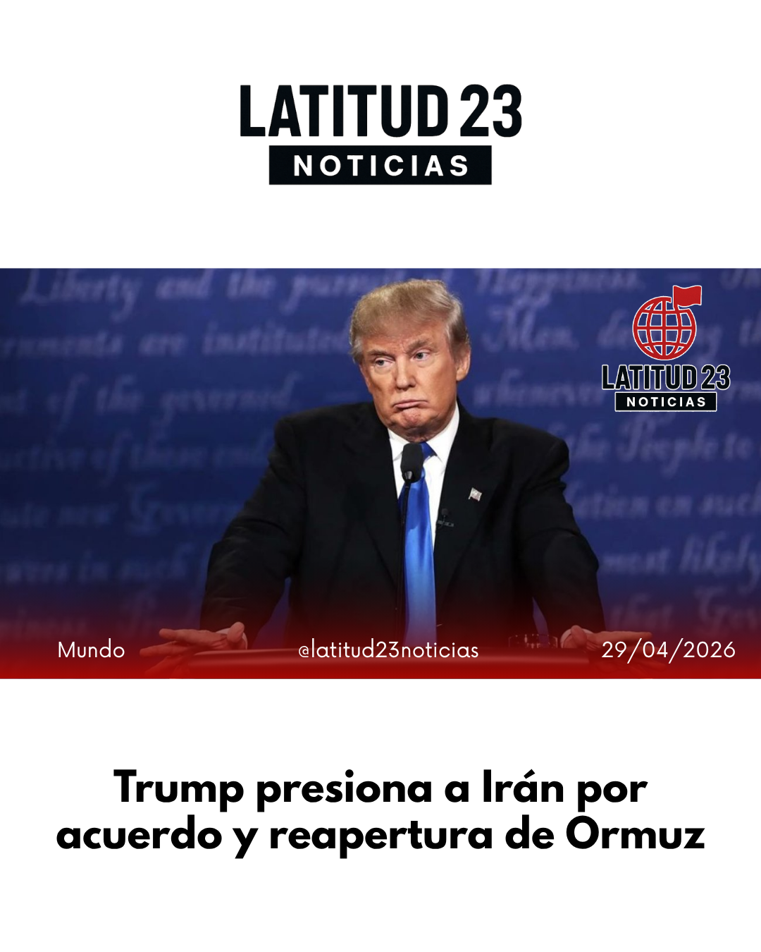 A través de redes sociales, el mandatario republicano reiteró su postura luego de haber extendido la semana pasada un alto al fuego con Teherán de manera indefinida. En su mensaje, advirtió que Irán debe actuar con rapidez para avanzar en las conversaciones.